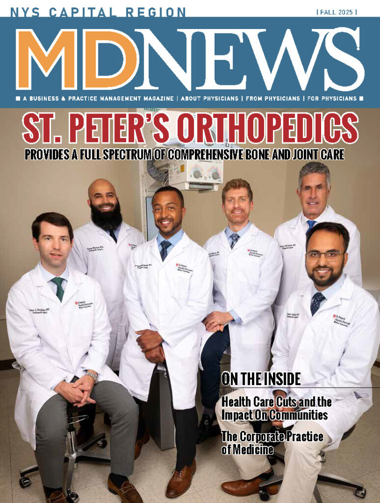 MD News publishes bi-monthly with a target audience of all licensed physicians and leading healthcare executives in NYS Capital Region. It is the premier local market, business-to-business, custom publication for physicians and leading healthcare decision-makers. MD News provides strategically focused, locally relevant, and deeply engaging content to its target audience. MD News provides its readers with insight regarding best practices, procedures, and up-to-date news as it relates to the NYS Capital Region healthcare community.
